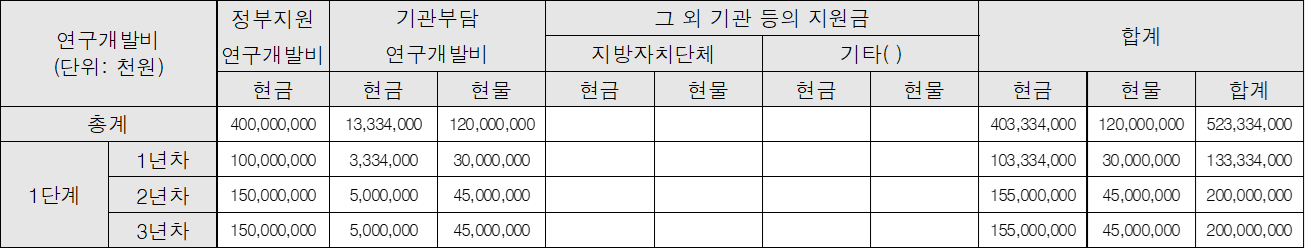 연구개발비는 연차별, 단계별, 참여기관의 형태(중소기업 or 중견기업 or 기타)에 따라 다양한 형태로 바뀔 수 있습니다.